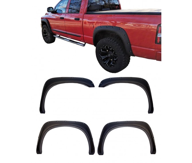 Fender Flares for 2003-08 Dodge Ram 1500/2500/3500 (Fleetside Models ONLY) - Pocket Riveted Style in Paintable Fine Textured Matte Black
